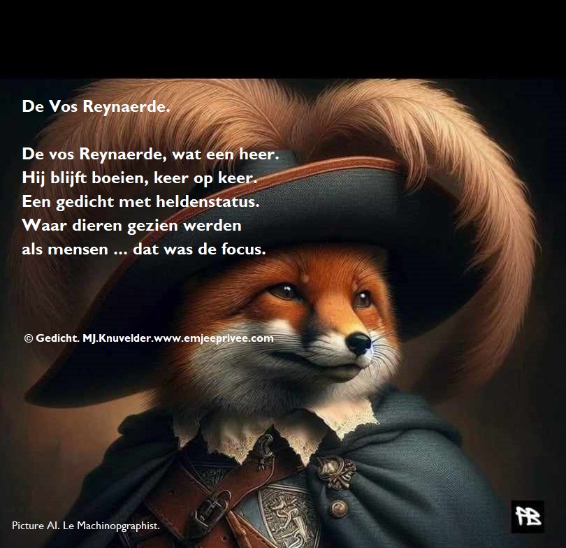 Gedicht. De vos Reynaerde Geplaatst op 6 september 202426 juli 2024 door mjknuvelder Voor een vergroting, klik op de afbeelding Delen: Klik om te delen op Facebook (Opent in een nieuw venster) Facebook Klik om op Pinterest te delen (Opent in een nieuw venster) Pinterest