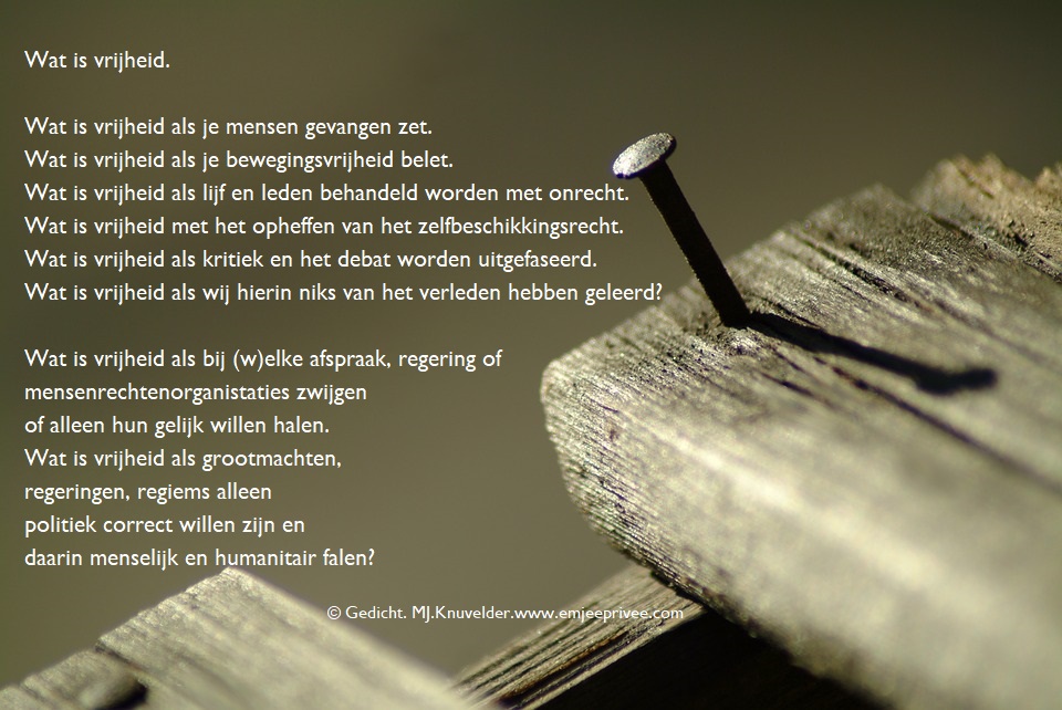 Gedicht. Wat is vrijheid Geplaatst op 25 september 202429 augustus 2024 door mjknuvelder Voor een vergroting, klik op de afbeelding Delen: Klik om te delen op Facebook (Opent in een nieuw venster) Facebook Klik om op Pinterest te delen (Opent in een nieuw venster) Pinterest