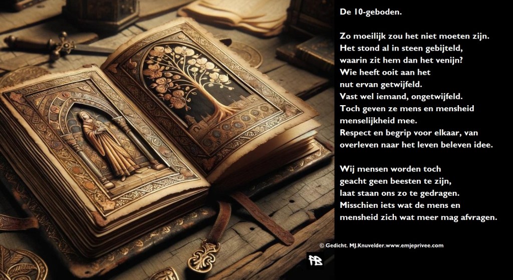 Gedicht. De 10 geboden Geplaatst op 28 september 202429 augustus 2024 door mjknuvelder Voor een vergroting, klik op de afbeelding Delen: Klik om te delen op Facebook (Opent in een nieuw venster) Facebook Klik om op Pinterest te delen (Opent in een nieuw venster) Pinterest
