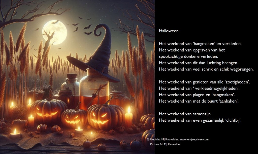 Gedicht. Halloween Geplaatst op 28 oktober 202415 oktober 2024 door mjknuvelder Voor een vergroting, klik op de afbeelding. Delen: Klik om te delen op Facebook (Opent in een nieuw venster) Facebook Klik om op Pinterest te delen (Opent in een nieuw venster) Pinterest