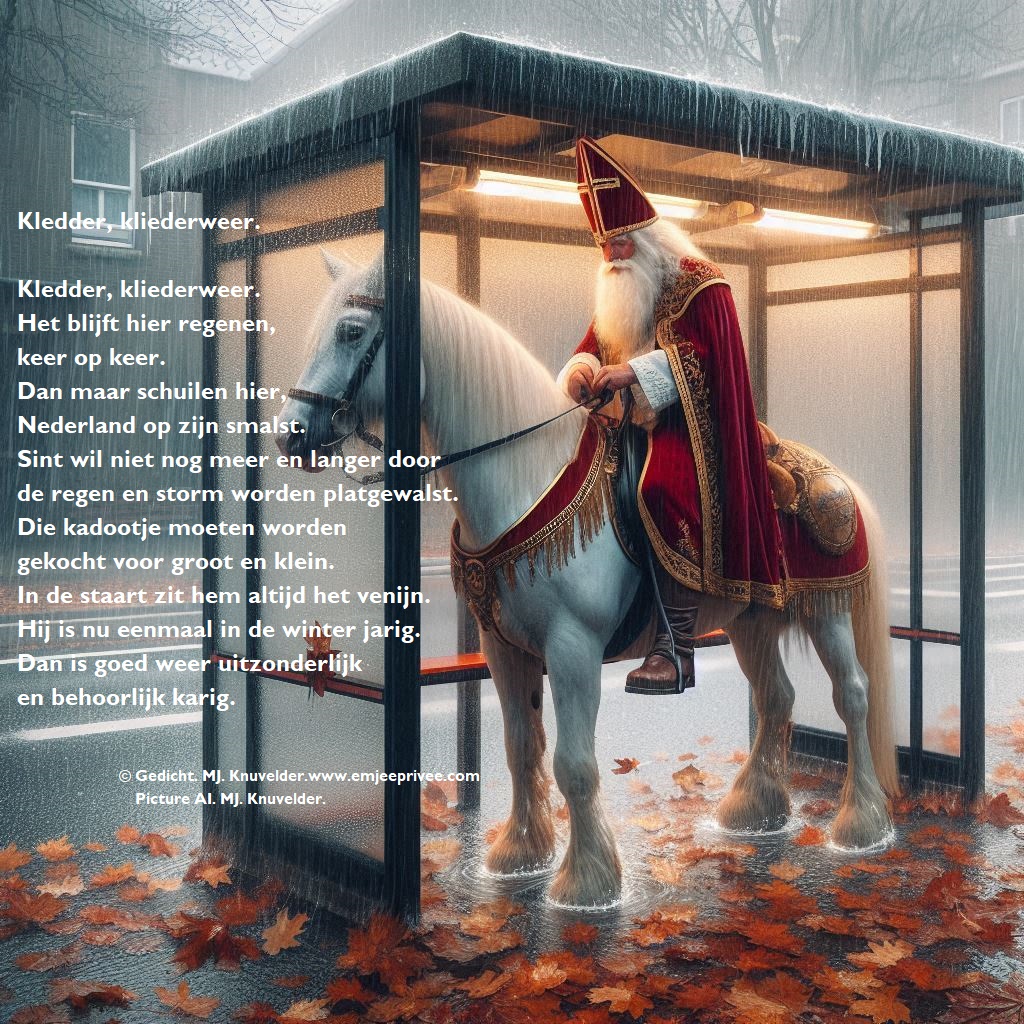 Gedicht. Kledder, kliederweer Geplaatst op 1 december 202429 november 2024 door mjknuvelder Delen: Klik om te delen op Facebook (Opent in een nieuw venster) Facebook Klik om op Pinterest te delen (Opent in een nieuw venster) Pinterest