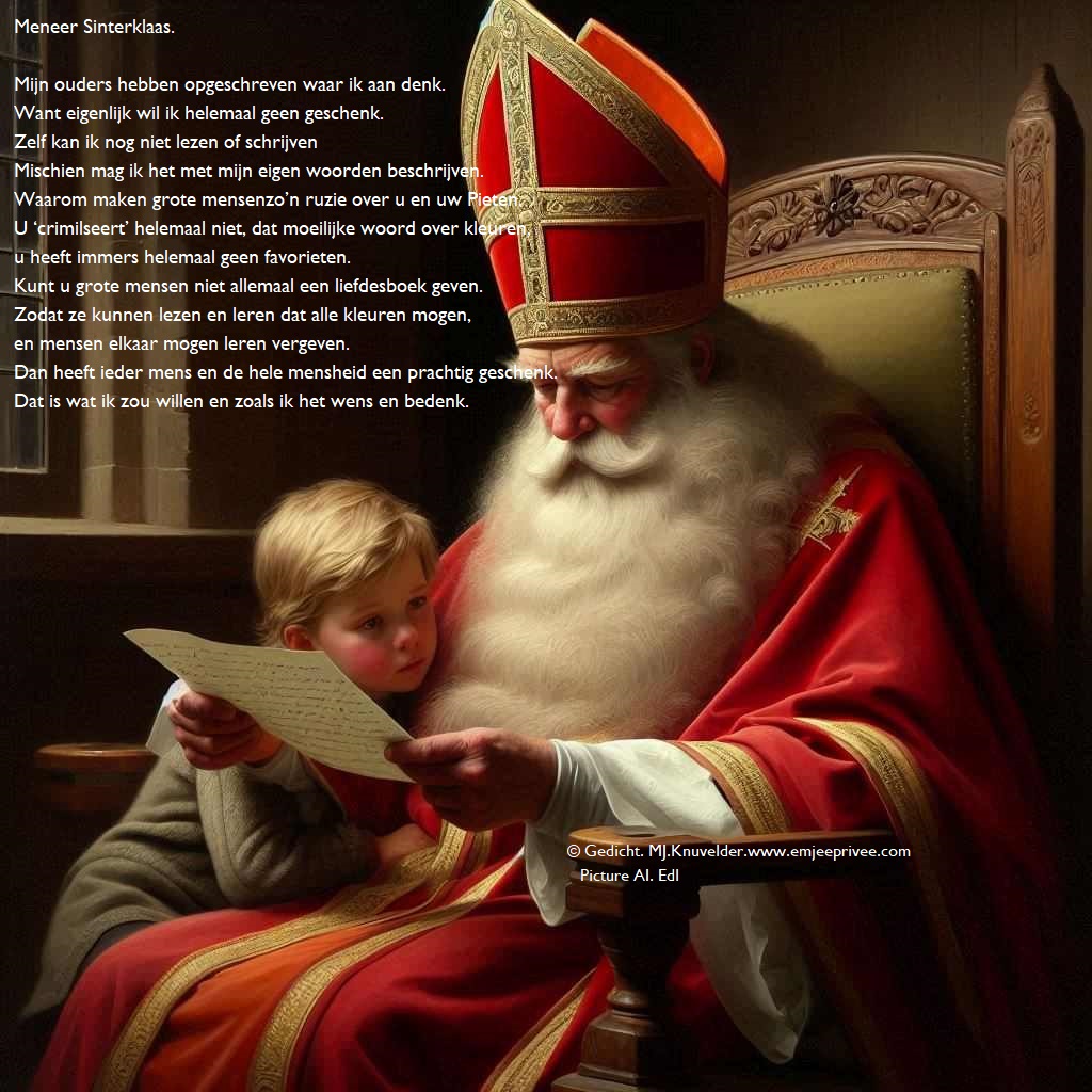 Gedicht. Meneer Sinterklaas Geplaatst op 5 december 202415 september 2024 door mjknuvelder Voor een vergroting, klik op de afbeelding Delen: Klik om te delen op Facebook (Opent in een nieuw venster) Facebook Klik om op Pinterest te delen (Opent in een nieuw venster) Pinterest