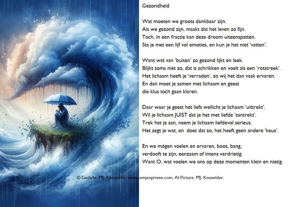 Gedicht. Gezondheid Geplaatst op 8 maart 202520 februari 2025 door mjknuvelder Voor een vergroting, klik op de afbeelding Delen: Klik om te delen op Facebook (Opent in een nieuw venster) Facebook Klik om op Pinterest te delen (Opent in een nieuw venster) Pinterest