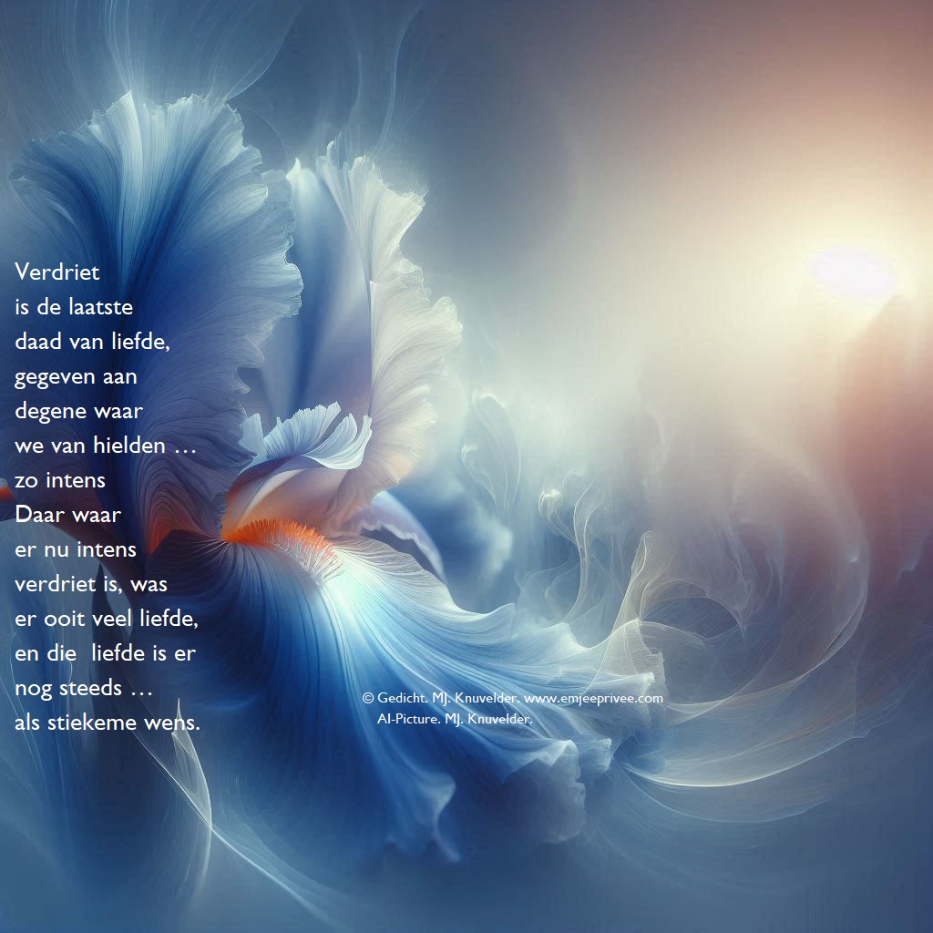 Gedicht en AI. Verdriet Geplaatst op 27 april 202521 maart 2025 door mjknuvelder Voor een vergroting, klik op de afbeelding Delen: Klik om te delen op Facebook (Opent in een nieuw venster) Facebook Klik om op Pinterest te delen (Opent in een nieuw venster) Pinterest