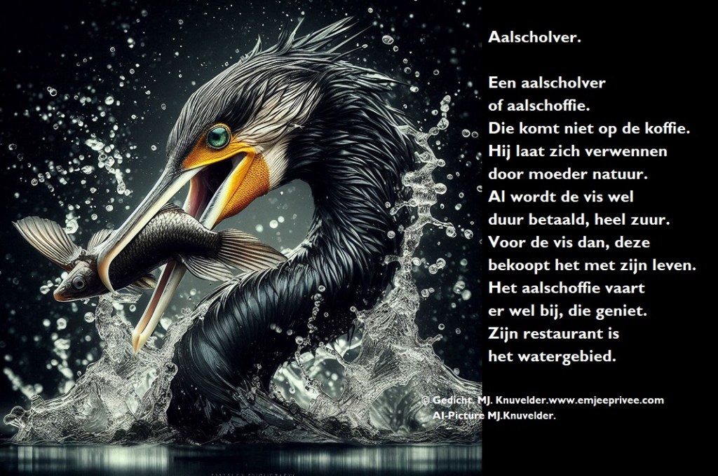 Gedicht. Aalscholver Geplaatst op 22 mei 202511 april 2025 door mjknuvelder Delen: Klik om te delen op Facebook (Opent in een nieuw venster) Facebook Klik om op Pinterest te delen (Opent in een nieuw venster) Pinterest