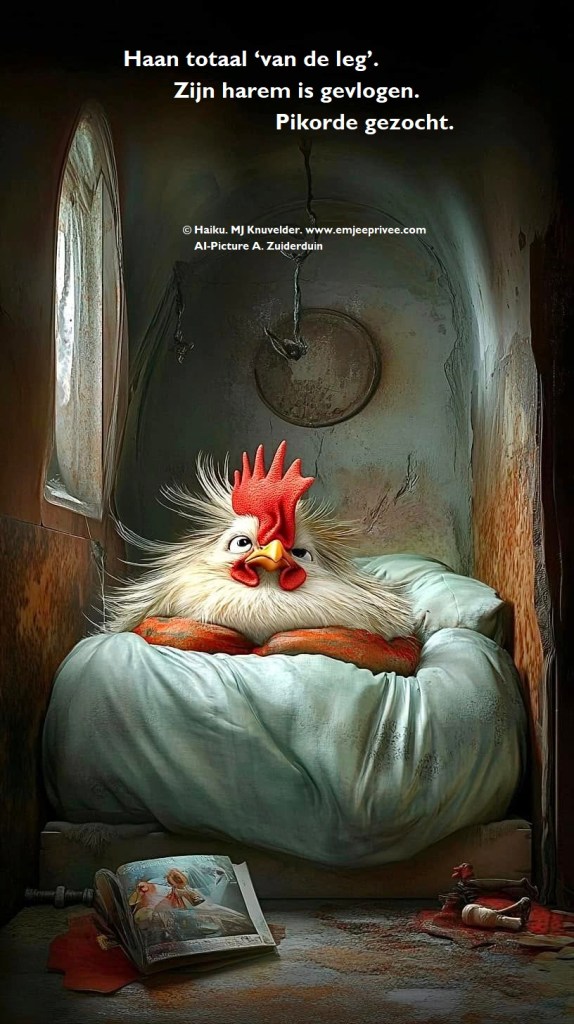 Haiku. Haan totaal ‘van de leg’. Geplaatst op 2 augustus 202528 mei 2025 door mjknuvelder Voor een vergroting, klik op de afbeelding Delen: Klik om te delen op Facebook (Opent in een nieuw venster) Facebook Klik om op Pinterest te delen (Opent in een nieuw venster) Pinterest