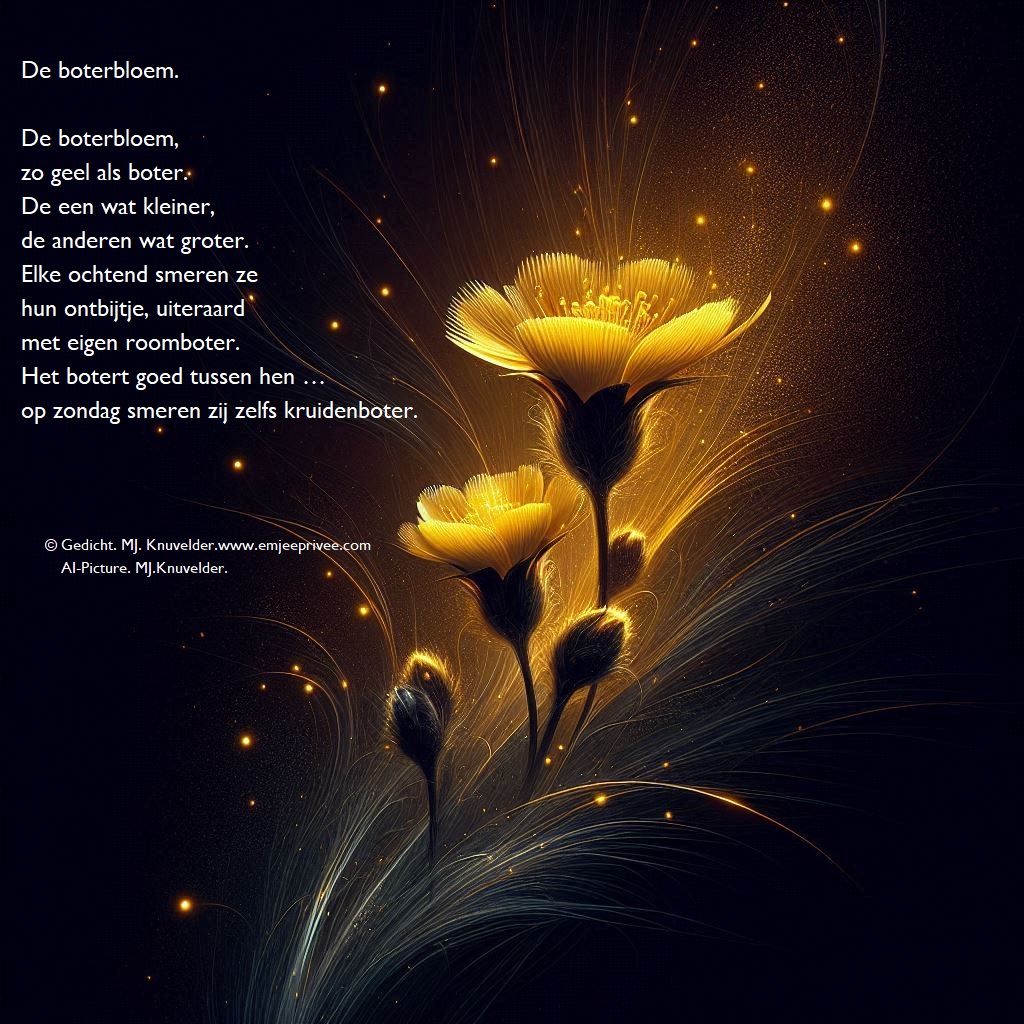 Gedicht. De boterbloem Geplaatst op 22 augustus 20255 juni 2025 door mjknuvelder Voor een vergroting, klik op de afbeelding. Delen: Klik om te delen op Facebook (Opent in een nieuw venster) Facebook Klik om op Pinterest te delen (Opent in een nieuw venster) Pinterest