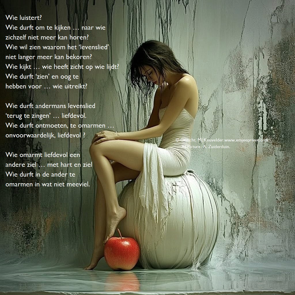 Gedicht. Wie luistert? Geplaatst op 2 september 20255 juni 2025 door mjknuvelder Voor een vergroting, klik op de afbeelding. Delen: Klik om te delen op Facebook (Opent in een nieuw venster) Facebook Klik om op Pinterest te delen (Opent in een nieuw venster) Pinterest