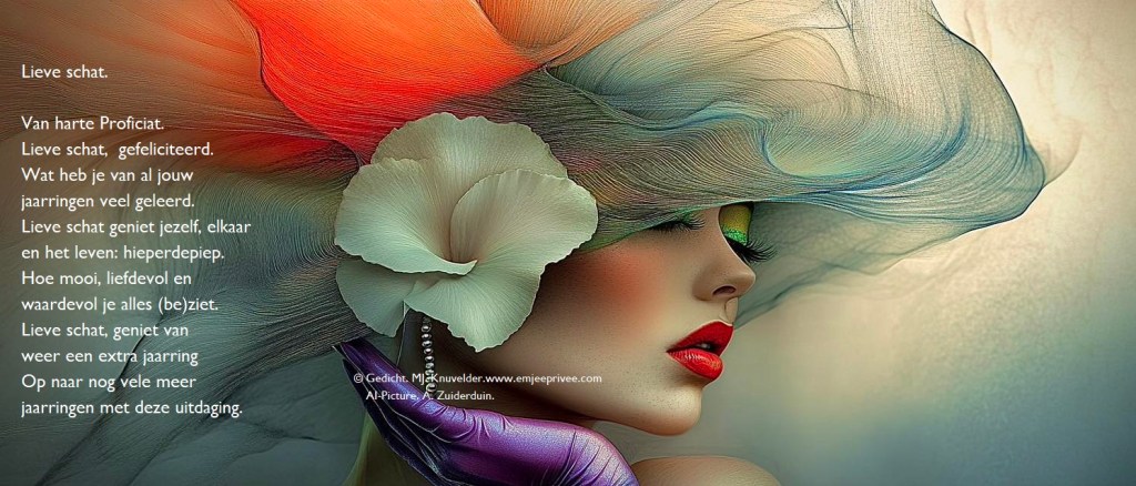 Gedicht. Lieve schat. Geplaatst op 1 november 202523 juni 2025 door mjknuvelder Voor een vergroting, klik op de afbeelding Delen: Klik om te delen op Facebook (Opent in een nieuw venster) Facebook Klik om op Pinterest te delen (Opent in een nieuw venster) Pinterest