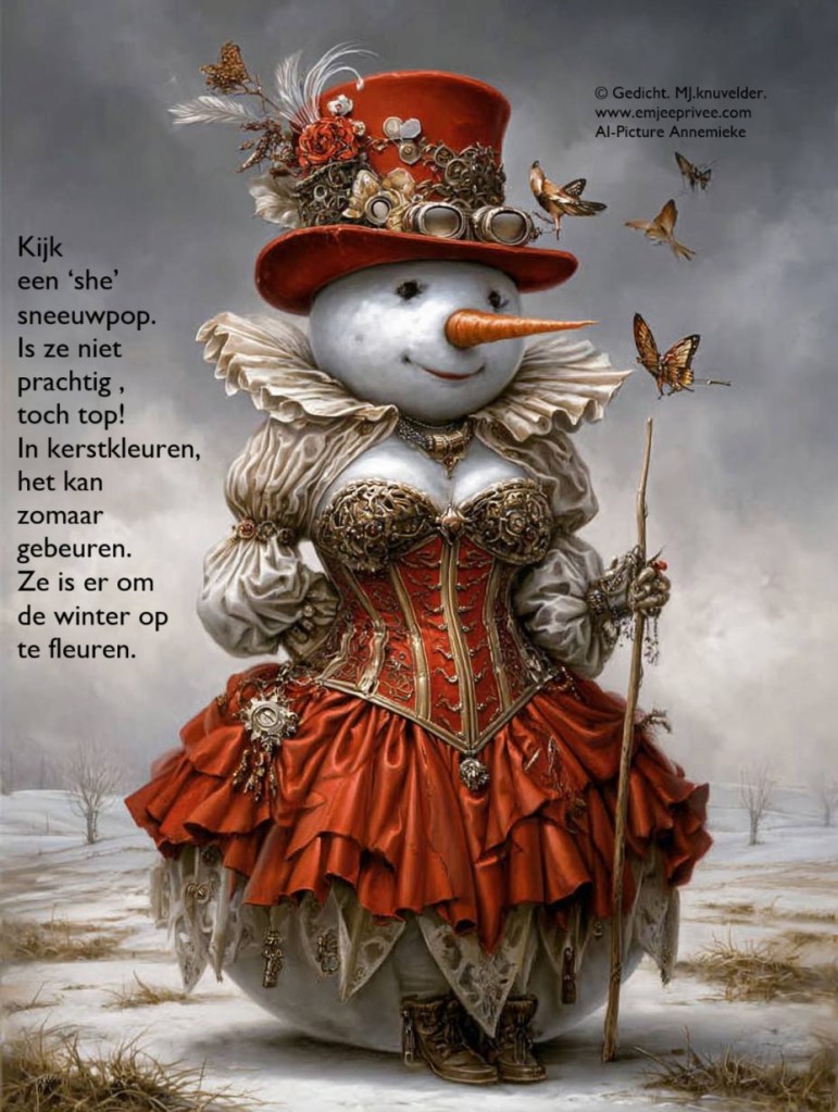 Gedicht. Kijk een ‘she’ sneeuwpop. Geplaatst op 21 december 202519 december 2025 door mjknuvelder Delen: Klik om te delen op Facebook (Opent in een nieuw venster) Facebook Klik om op Pinterest te delen (Opent in een nieuw venster) Pinterest