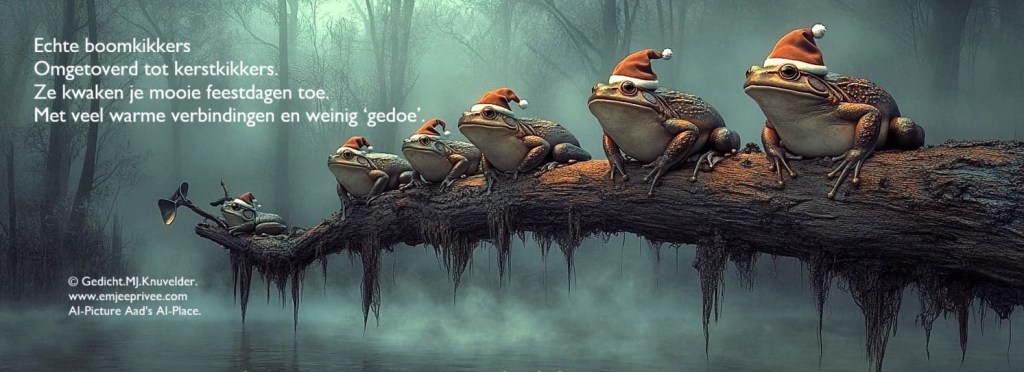 Gedicht. Echte boomkikkers. Geplaatst op 24 december 202519 december 2025 door mjknuvelder Delen: Klik om te delen op Facebook (Opent in een nieuw venster) Facebook Klik om op Pinterest te delen (Opent in een nieuw venster) Pinterest