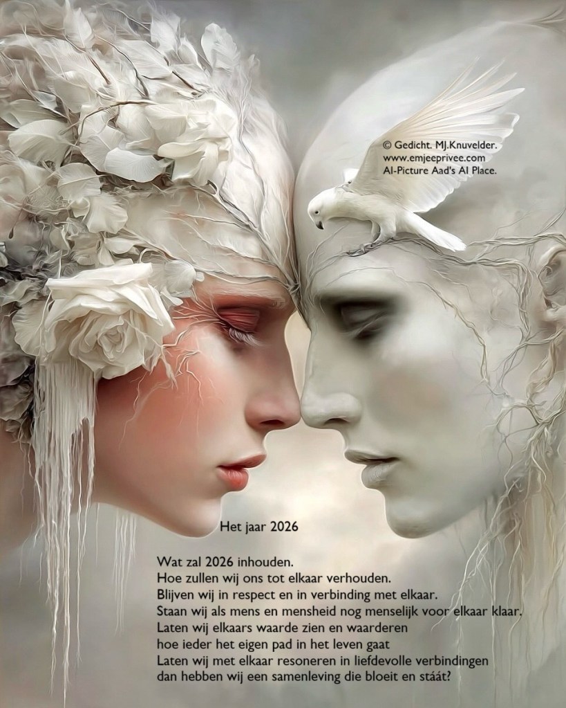 Gedicht. Het jaar 2026. Geplaatst op 2 januari 202630 december 2025 door mjknuvelder Delen: Klik om te delen op Facebook (Opent in een nieuw venster) Facebook Klik om op Pinterest te delen (Opent in een nieuw venster) Pinterest