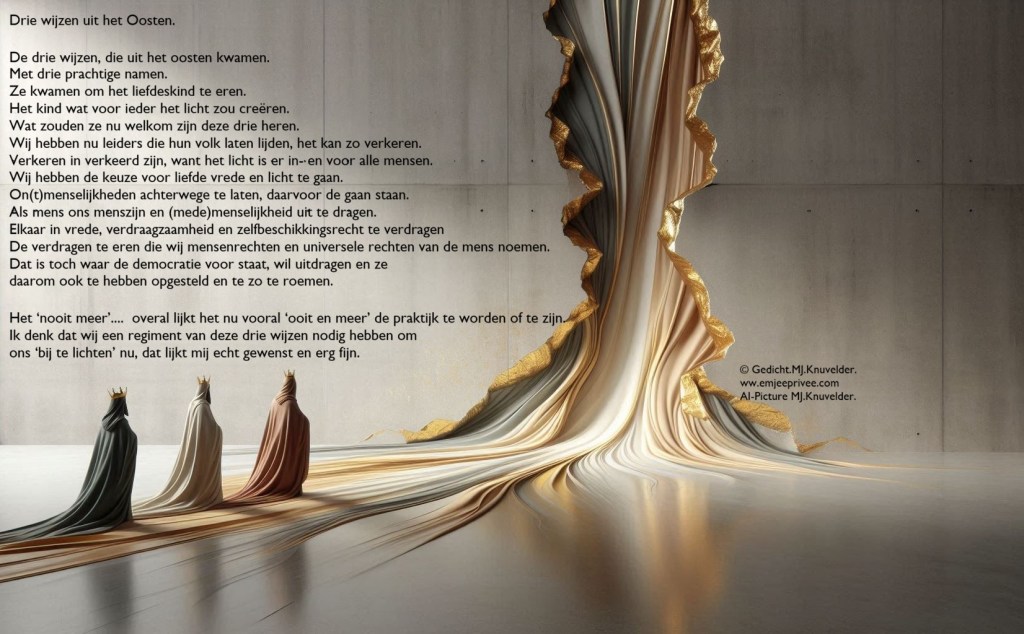 Gedicht. Drie wijzen uit het Oosten. Geplaatst op 6 januari 202624 december 2025 door mjknuvelder Voor een vergroting klik op de afbeelding. Delen: Klik om te delen op Facebook (Opent in een nieuw venster) Facebook Klik om op Pinterest te delen (Opent in een nieuw venster) Pinterest