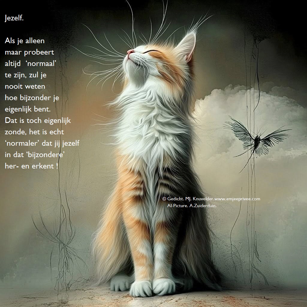 Gedicht. Jezelf. Geplaatst op 3 februari 20261 augustus 2025 door mjknuvelder Voor een vergroting, klik op de afbeelding Delen: Share op Facebook (Opent in een nieuw venster) Facebook Delen op Pinterest (Opent in een nieuw venster) Pinterest