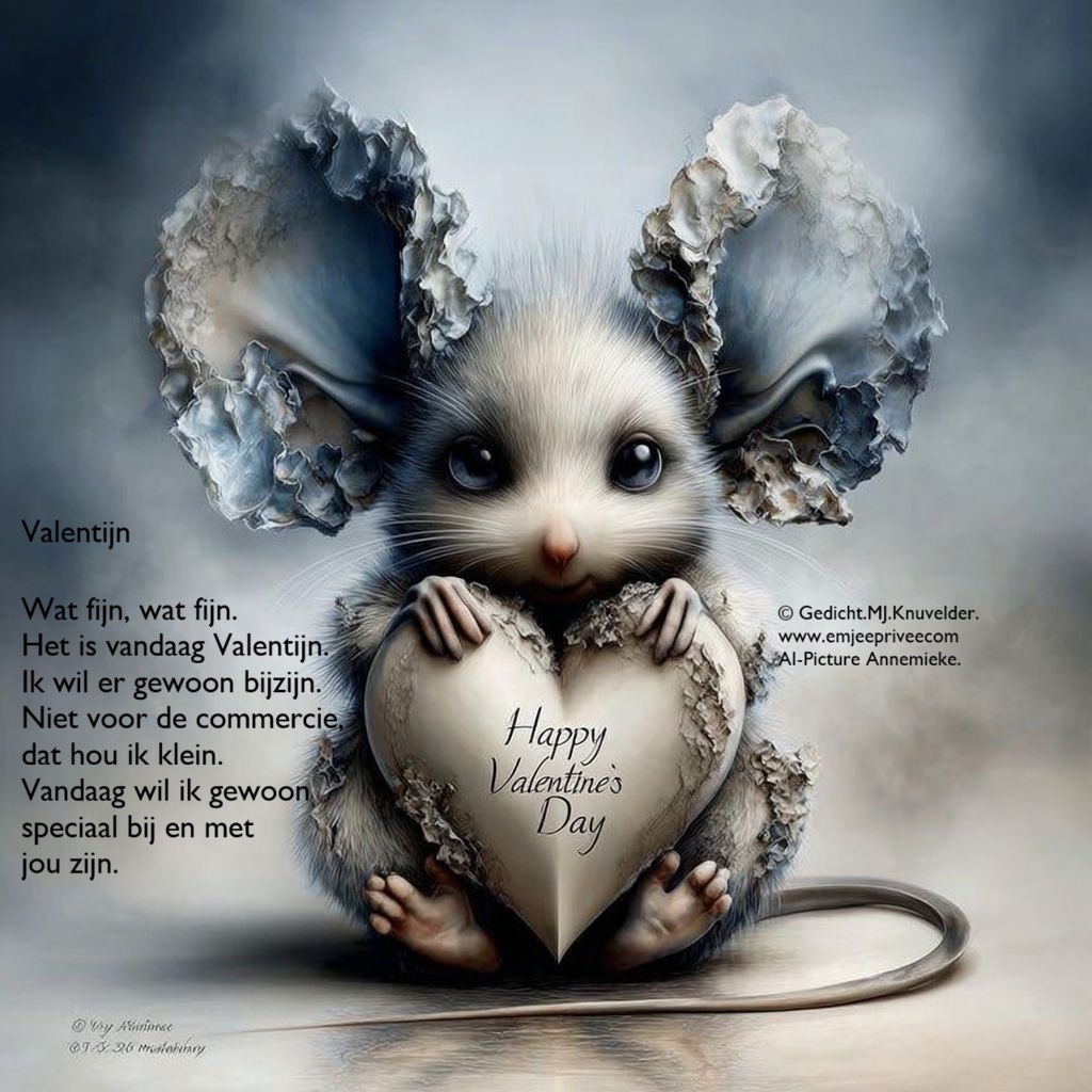 Gedicht. valentijn Geplaatst op 14 februari 202614 februari 2026 door mjknuvelder Voor een vergroting klik op de afbeelding Delen: Share op Facebook (Opent in een nieuw venster) Facebook Delen op Pinterest (Opent in een nieuw venster) Pinterest
