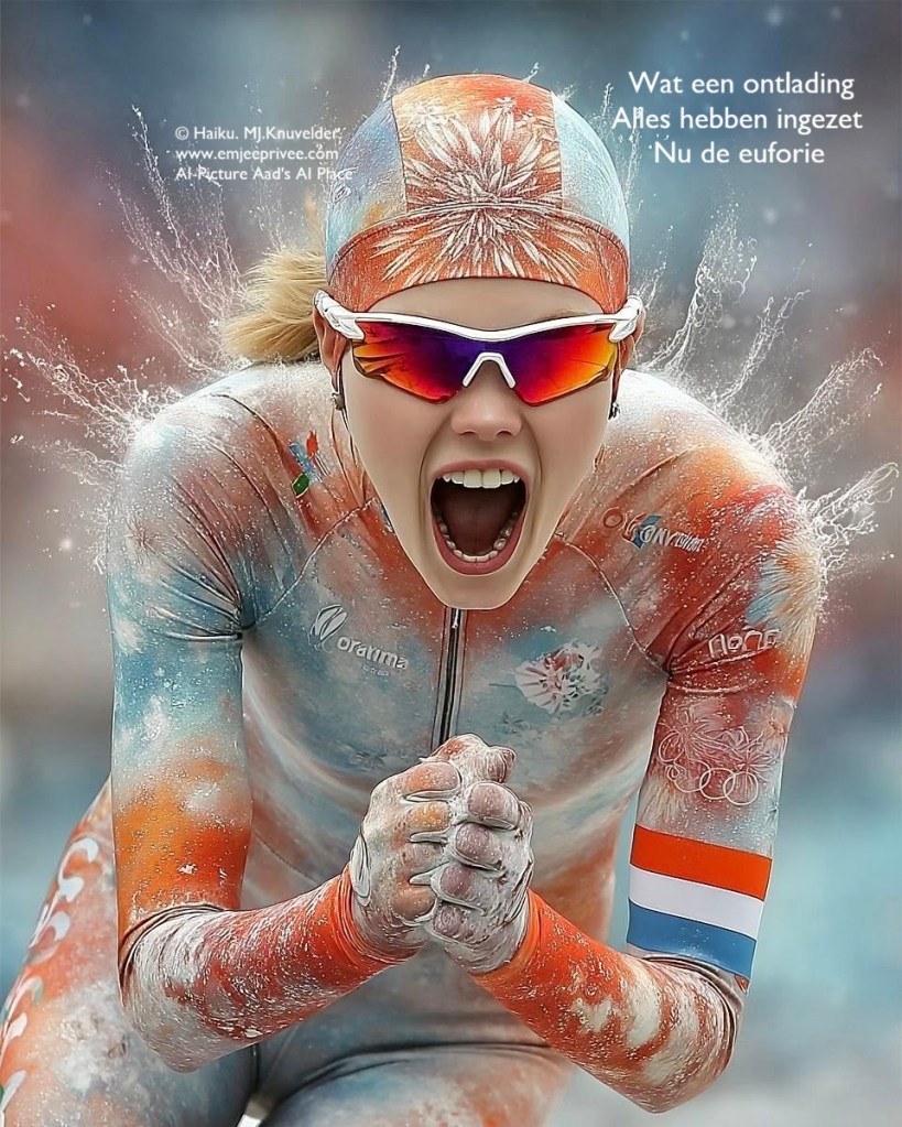 Haiku. Wat een ontlading. Geplaatst op 18 februari 202614 februari 2026 door mjknuvelder Glijdend over ijs Onvoorstelbare snelheid De kou trotserend Delen: Share op Facebook (Opent in een nieuw venster) Facebook Delen op Pinterest (Opent in een nieuw venster) Pinterest
