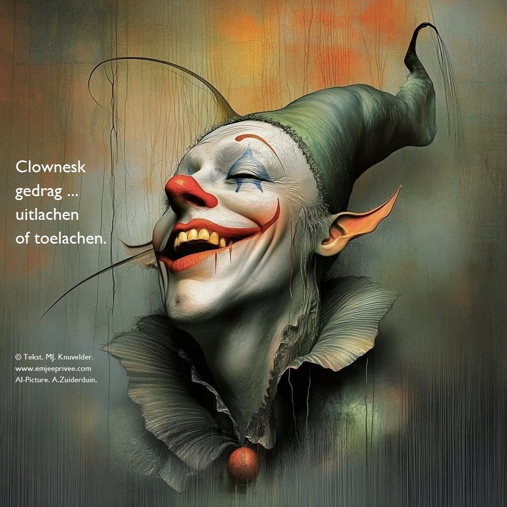 Tekst. Clownesk gedrag. Geplaatst op 24 februari 20261 augustus 2025 door mjknuvelder Delen: Share op Facebook (Opent in een nieuw venster) Facebook Delen op Pinterest (Opent in een nieuw venster) Pinterest
