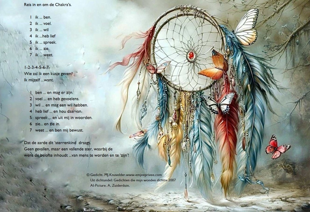 Gedicht. Reis in en om de chakra’s Geplaatst op 26 februari 202630 augustus 2025 door mjknuvelder Voor een vergroting, klik op de afbeelding Delen: Share op Facebook (Opent in een nieuw venster) Facebook Delen op Pinterest (Opent in een nieuw venster) Pinterest