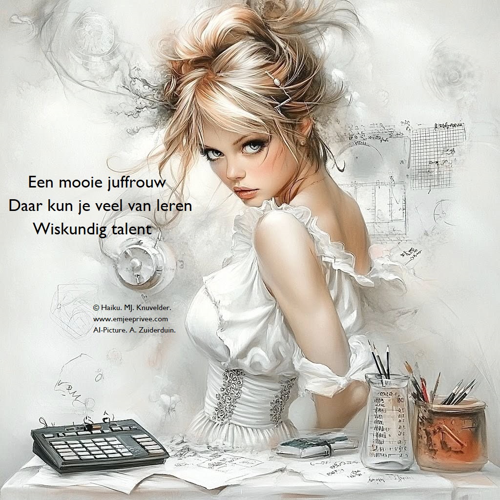Haiku. Een mooie juffrouw. Geplaatst op 27 februari 20262 augustus 2025 door mjknuvelder Voor een vergroting, klik op de afbeelding Delen: Share op Facebook (Opent in een nieuw venster) Facebook Delen op Pinterest (Opent in een nieuw venster) Pinterest