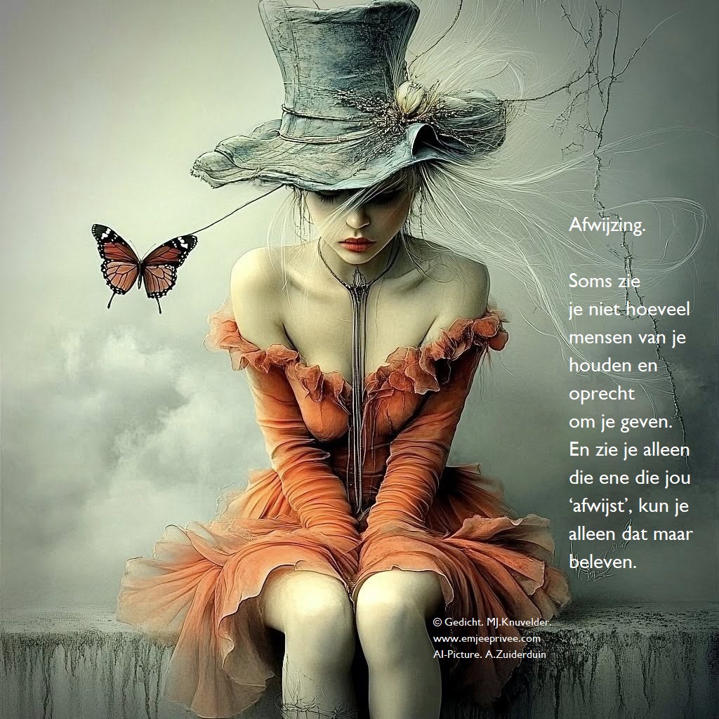 Gedicht. Afwijzing Geplaatst op 2 april 202630 augustus 2025 door mjknuvelder Delen: Share op Facebook (Opent in een nieuw venster) Facebook Delen op Pinterest (Opent in een nieuw venster) Pinterest