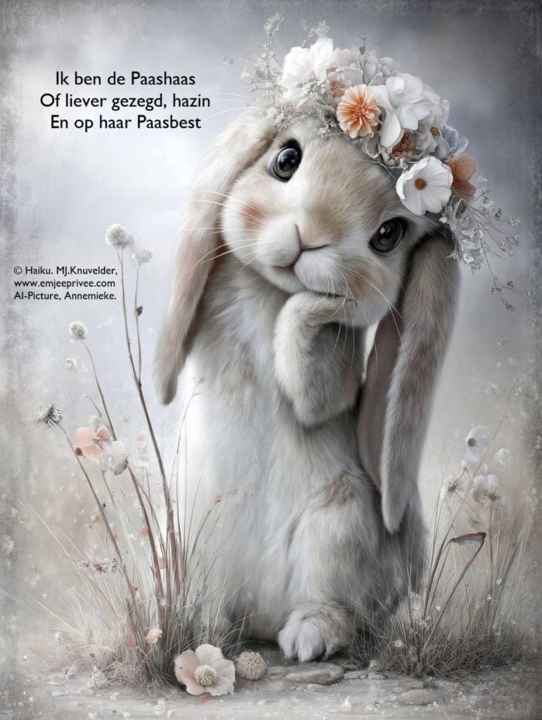 Haiku. Ik ben de Paashaas. Geplaatst op 2 april 202627 maart 2026 door mjknuvelder Voor een vergroting, klik op de afbeelding Delen: Share op Facebook (Opent in een nieuw venster) Facebook Delen op Pinterest (Opent in een nieuw venster) Pinterest