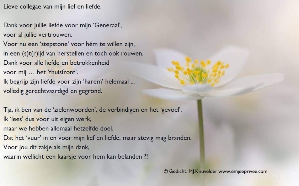 Gedicht. Lieve collegae van mijn lief en liefde